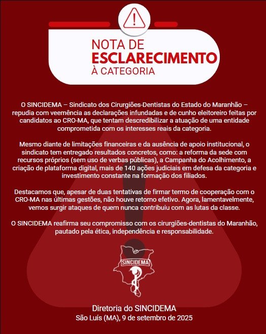 Um sindicato comprometido com a valorização, a defesa e o fortalecimento dos cirurgiões-dentistas do Maranhão. Aqui, você encontra representatividade real, apoio jurídico, oportunidades de capacitação e voz ativa nas decisões que impactam a sua profissão. Se você busca um sindicato sério, atuante e que luta pelo seu futuro, o SINCIDEMA é a escolha certa.